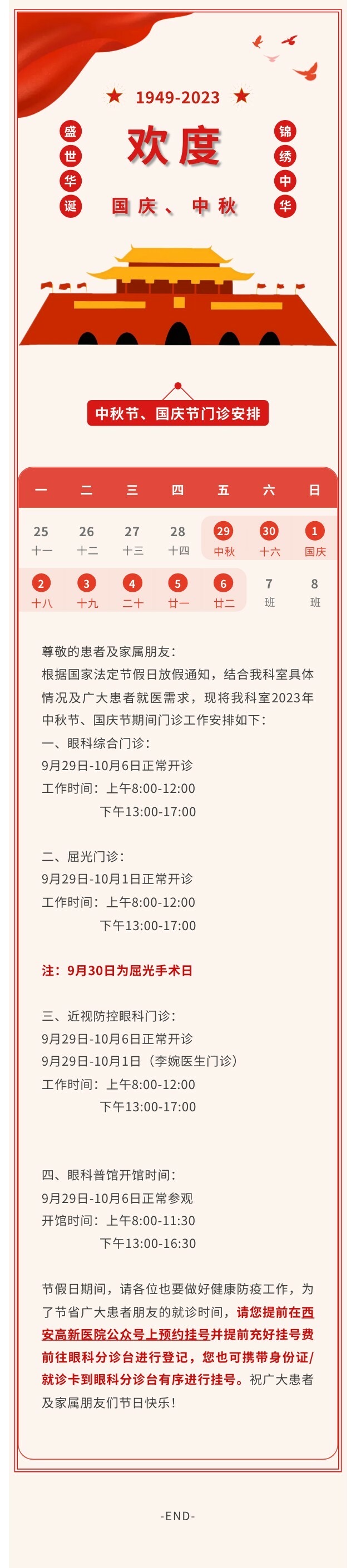 - 中秋節(jié)、國慶節(jié)門診安排 2023-09-30