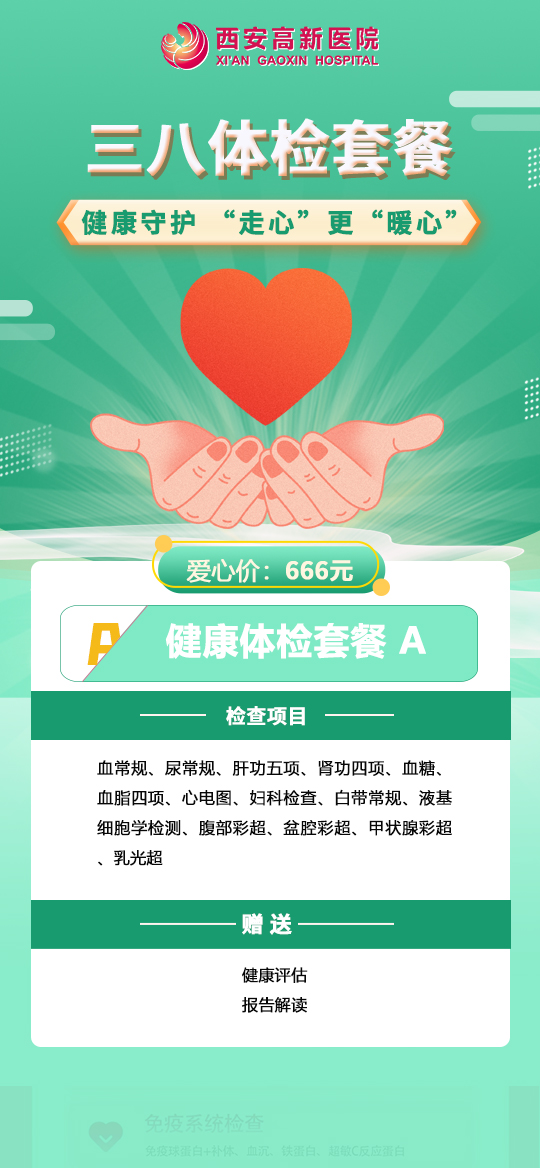 在這萬物復蘇的季節里,女神們的節日也將如期而至;在這個溫柔以“她”為重的日子里,小新繼續把健康關懷給姐妹們安排起來!體檢科為各位姐妹們安排了優惠活動,希望通過我們的專業服務,為您送上了一份特別的節日禮物。愿您從這個春天開始,收獲健康,卓然而立,綻放光芒。