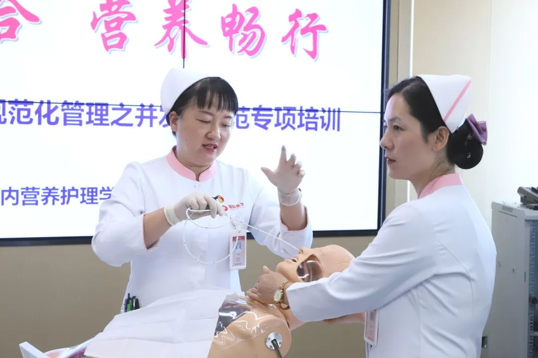 為落實醫院腸內營養規范化管理,掌握腸內營養相關并發癥的預防與處理措施,熟練掌握鼻腸管置管技術,西安高新醫院腸內營養護理學組在2024年10月28日舉辦了以“知技融合 營養暢行”為主題的腸內營養規范化管理之并發癥防范專項培訓,由護理部牽頭醫院腸內營養管理小組主辦,各科室腸內營養聯絡員及科室骨干護士約50余人參加此次培訓。