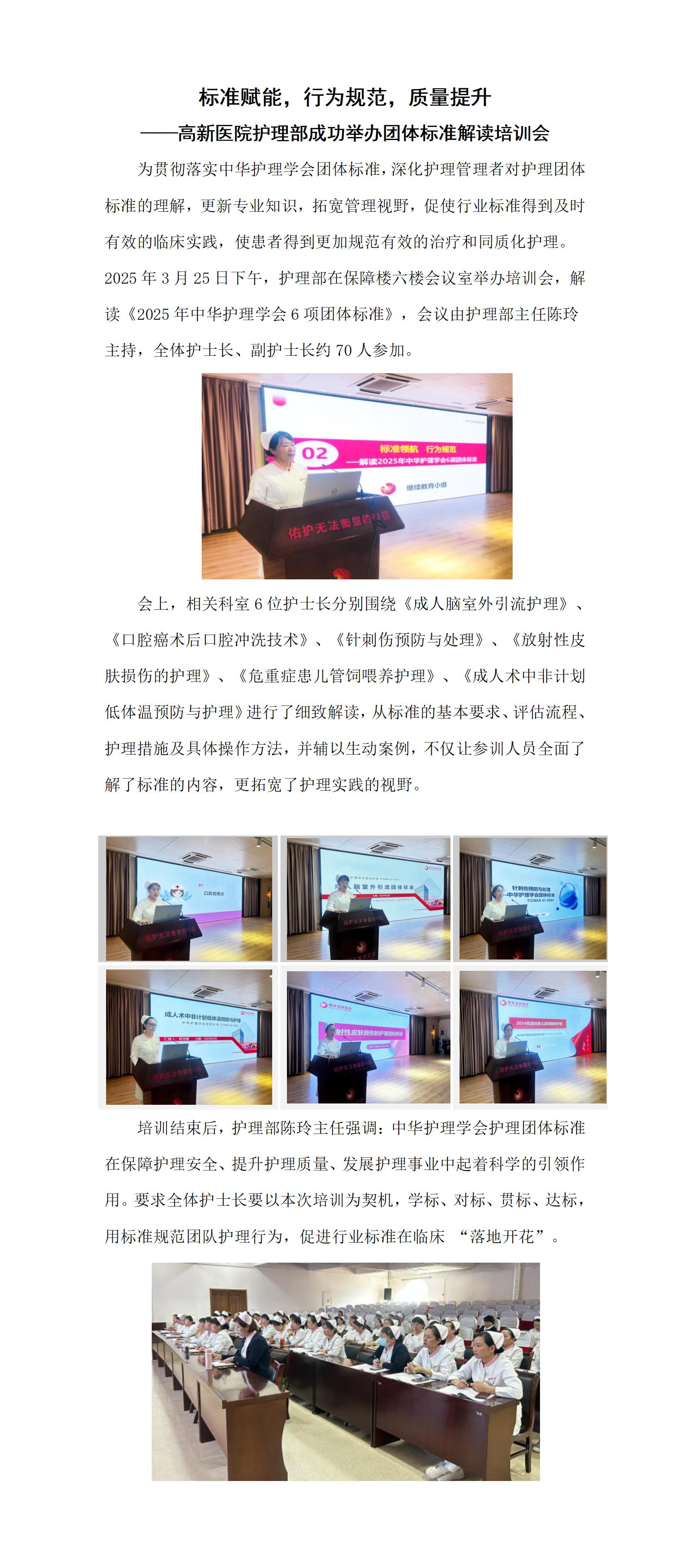 標準賦能,行為規范,質量提升 ——高新醫院護理部成功舉辦團體標準解讀培訓會