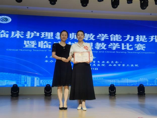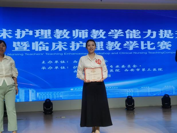 2025年8月21日,在西安護(hù)理學(xué)會(huì)舉辦的首屆“臨床護(hù)理教師教學(xué)能力提升班暨臨床護(hù)理教學(xué)比賽”中,我院兒科門診李藤藤護(hù)士憑借扎實(shí)的教學(xué)功底和突出的現(xiàn)場展示,《深夜的犬吠聲—小兒急性喉炎的護(hù)理》從27個(gè)選手中脫穎而出,斬獲三等獎(jiǎng)!