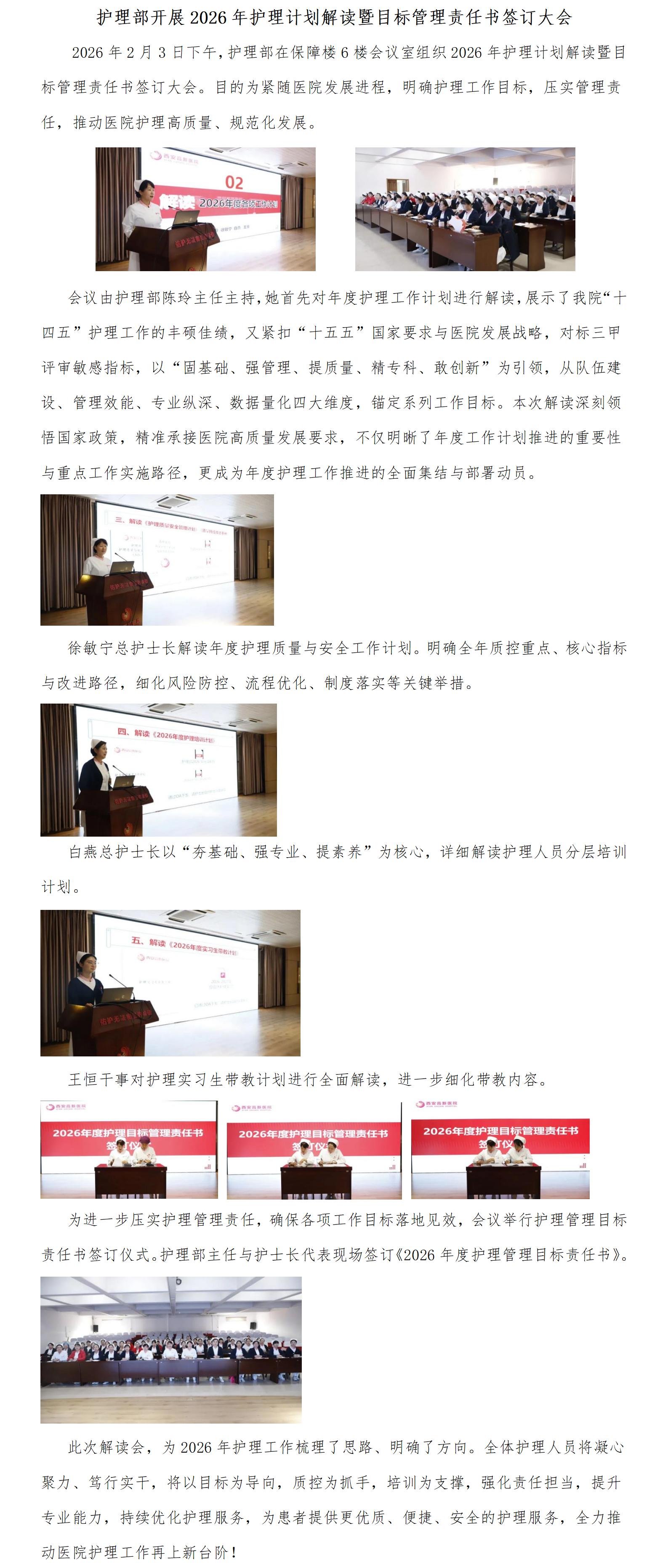 - 護理部開展2026年護理計劃解讀暨目標管理責任書簽訂大會 2026-02-09