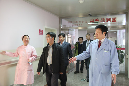 2012年10月26日上午衛生部醫政司綜合處高學成處長一行來西安高新醫院參觀調研,在省、市領導的陪同下,參觀了醫院門診、國際部門診、核醫學和影像科、住院部、國際部產科、普通病房、VIP病房、血液透析室和重癥監護室,高處長對西安高新醫院的發展給予了充分的肯定,高度評價了西安高新醫院的管理機制,最后在會議室與省、市領導、醫院領導進行座談,主要探討民營醫院的運營監管、醫政改革需要制定的方針政策等內容。