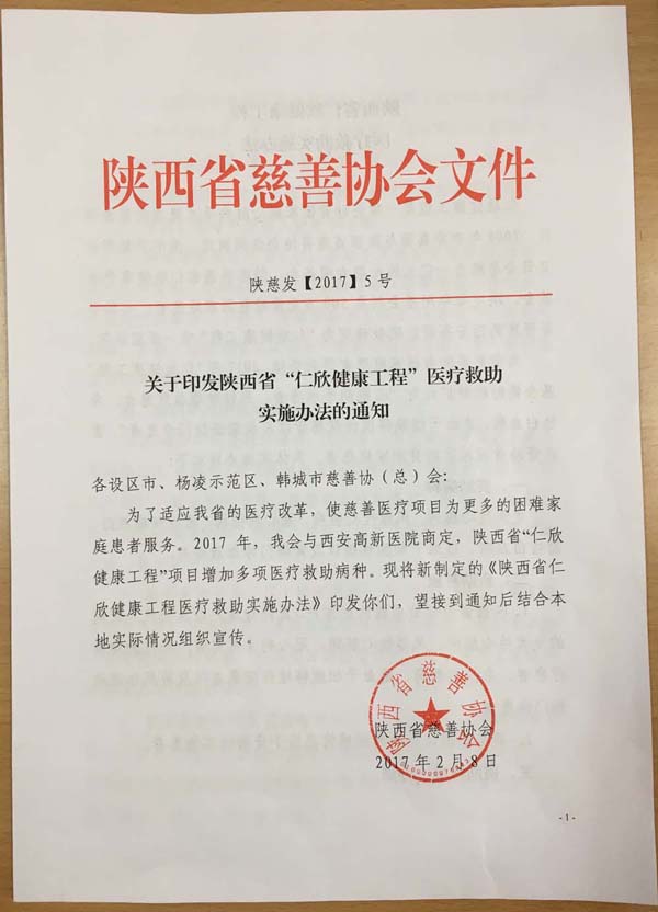 愛心救助工作在西安高新醫院已開展多年,是醫院長期堅持的一項公益救助項目。醫院高度重視“仁欣健康工程”基金的落實,特設立項目辦公室,精心組織、認真負責,項目辦公室成員多次到陜西省及鄰邊省份200多個市、區、縣慈善組織和民政部門,開展多渠道、全方位,有特色的宣傳工作,積極推動“仁欣健康工程”項目的實施。近年來,隨著西安高新醫院的不斷發展,設備在不斷增加與更新,醫療技術有了進一步提高,新增了許多醫療專業,惡性腫瘤放療患者、急性白血病、造血干細胞移植以及血液透析患者等許多復雜疑難病患者慕名而來。這些病種的醫療費用較大,國家醫保(農合)報銷有限,許多家庭因此陷入經濟困境,為進一步減輕患者醫療負擔,項目辦公室負責人多次走訪有關部門,協商將“仁欣健康工程”基金救助病種擴大范圍。經過不懈的努力,陜西省慈善協會同意將“惡性腫瘤放療;急性白血病、造血干細胞移植以及門診血液透析”等病種也納入“仁欣健康工程”基金的救助范圍。相信廣大的適應癥患者已經聽到了這一振奮人心的消息。
