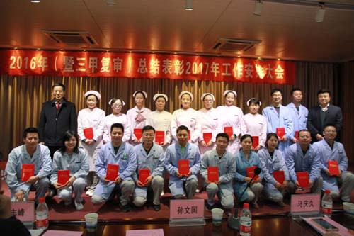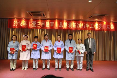 首先,孫副總裁代表劉建申總裁及集團(tuán)領(lǐng)導(dǎo)對(duì)全院?jiǎn)T工進(jìn)行了節(jié)前慰問(wèn)和節(jié)日祝福,并作了重要講話。他講到,2016年集團(tuán)有兩件大事:一是醫(yī)院順利完成了三甲復(fù)審工作,并肯定西安高新醫(yī)院過(guò)去一年所取得的成績(jī),西安高新醫(yī)院的隊(duì)伍是經(jīng)得起考驗(yàn)的,是團(tuán)結(jié)一致的,是能戰(zhàn)勝困難的;二是2017年度集團(tuán)重點(diǎn)建設(shè)項(xiàng)目將致力打造中國(guó)上市公司醫(yī)療第一股,需要醫(yī)院和集團(tuán)的密切配合。同時(shí),經(jīng)過(guò)集團(tuán)和醫(yī)院的共同努力,西安市政府對(duì)西安高新醫(yī)院Ⅱ期擴(kuò)建項(xiàng)目也作了特批,用總書記的話:春節(jié)后,咱就擼起袖子好好干。相信2年后,每位西安高新醫(yī)院人都會(huì)有一個(gè)更廣闊的舞臺(tái)和平臺(tái),集團(tuán)也將不遺余力地支持醫(yī)院發(fā)展,祝福全體同仁2017年身體好、狀態(tài)好、家庭好、工作好。會(huì)上,馬慶久院長(zhǎng)從工作亮點(diǎn)、三甲復(fù)審,工作完成情況以及存在的問(wèn)題等方面對(duì)2016年度工作作了全面總結(jié),并對(duì)2017年醫(yī)院工作安排進(jìn)行了部署。由財(cái)務(wù)總監(jiān)劉戶民宣讀了《關(guān)于表彰2016年度(暨三甲復(fù)審)先進(jìn)集體及個(gè)人的決定》,并舉行了隆重的頒獎(jiǎng)儀式。
