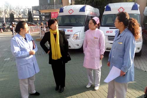 趙處長在醫(yī)院工作人員一行的陪同下,先后走訪并現(xiàn)場檢查了VIP(老年病)科、心內(nèi)一科預留病房、搶救設備、藥品準備情況,急診科急診監(jiān)護室、搶救室、急救器材和藥品、急救車輛配備情況等,并與急診科主任王小燕就醫(yī)院急救應急工作進行了交流。