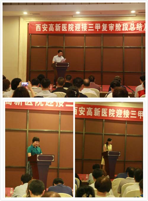 西安高新醫院于2016年7月16日至7月17日圓滿舉辦了迎接三甲復審階段性工作總結及再動員大會,院領導、職能部門負責人、臨床及醫技科室主任、護士長、首席專家等100余人參加了大會。會中各科主任、護士長針對醫院三甲復審啟動以來,科室評審指標完成情況及亮點、目前存在的主要缺陷及問題、下一步整改措施及打算等進行總結匯報、經驗交流,院領導對各科工作進行點評,進行再動員發言。本次大會,為做好迎評各項工作,確保科室及醫院三甲復審一次通過吹響了沖刺的號角。