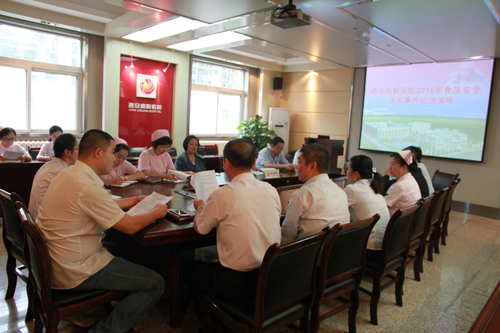 為加強醫院安全管理,提高醫院食品安全突發事件應急處理能力,保障員工、患者生命安全和身體健康,西安高新醫院2016年9月19日舉行了食品安全突發事件應急預案演練。本次演練由院辦公室組織,各相關部門、科室及餐廳全體員工參加。