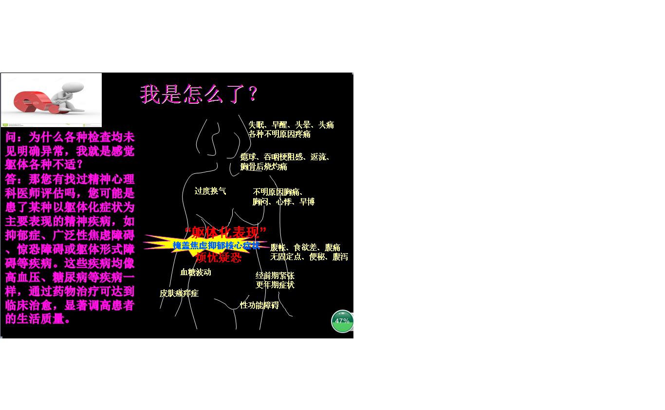 若您存在這些癥狀,或經(jīng)常抑郁寡歡、高興不起來(lái)、對(duì)做事情提不起興趣、緊張、擔(dān)心、惶惶不可終日、坐臥不寧、敏感多疑、入睡困難、早醒、易醒、夢(mèng)多等癥狀,請(qǐng)電話咨詢我們或至精神衛(wèi)生科門診就診。咨詢電話:88330009;精神衛(wèi)生科門診:門診樓2樓北邊。