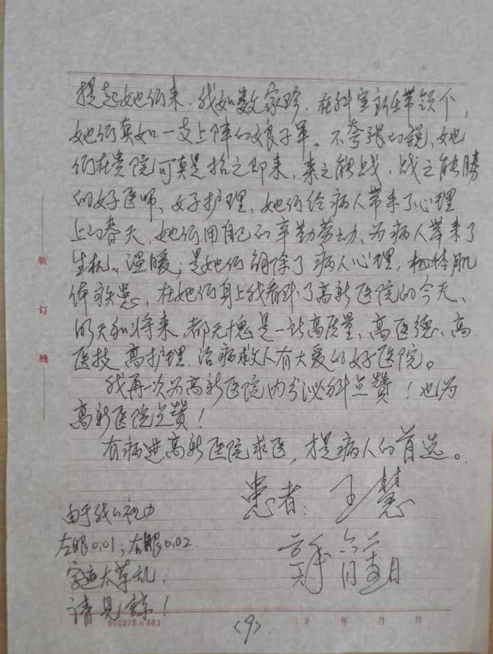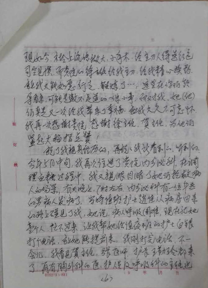 2016年7月初的一個(gè)大清早,一位上了年紀(jì)的阿姨將一封長(zhǎng)達(dá)9頁的親筆感謝信送到了院辦,并激動(dòng)萬分地向我們?cè)V說了自己這五年來在內(nèi)分泌科住院期間的切身感受,并分享了這些年來與內(nèi)分泌科醫(yī)護(hù)人員間的點(diǎn)點(diǎn)滴滴。