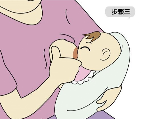 3、寶寶面對(duì)乳房,鼻尖對(duì)乳頭;