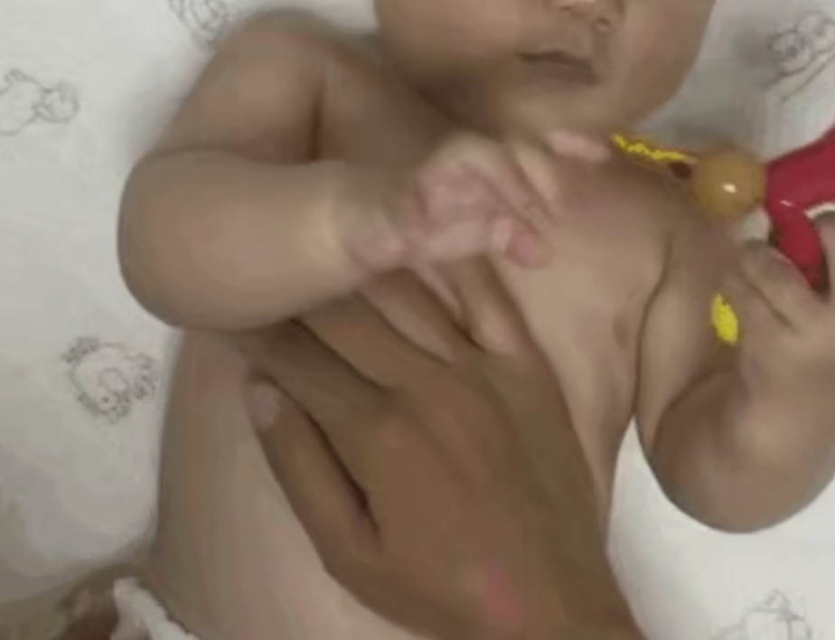 下面, 我們看一下寶寶便秘腹部按摩步驟
