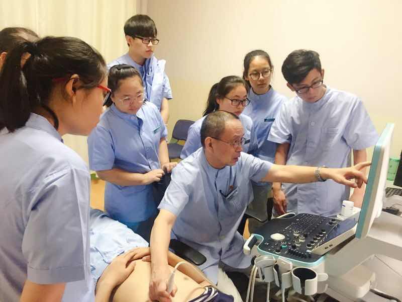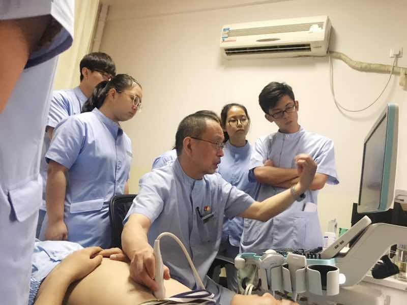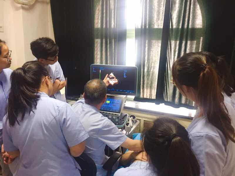 7月6日,醫(yī)務部安排9名醫(yī)學影像專業(yè)學生到超聲科實習,當日下午超聲科黃主任就給這9名同學進行在超聲科作為一名實習生的注意事項,并對他們進行了一些超聲基本切面的講解。并找來實習同學現(xiàn)場實操,同學們都非常認真的聽著,邊看圖邊講解,同學們收獲很大。講解完后,他們還互相練習黃主任講過的切面,互相探討,交流。
