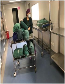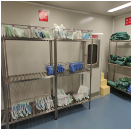 無菌物品存放區:無菌物品存放區是消毒供應中心的“出口”,也是無菌物品庫房,工作人員的責任心和認真態度是非常重要的,無菌物品的管理和發放是該區的主要工作,從環境上做到無菌架上標識清晰、架面整潔、溫濕度符合規范要求;從人員上每日確認無菌物品有效性、清點無菌物品基數、嚴格按照“先進先出”的原則發放等等,每個工作步驟都要求嚴肅認真。