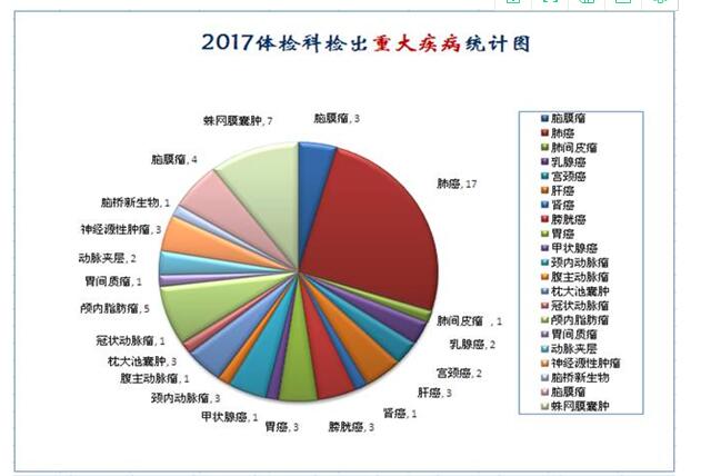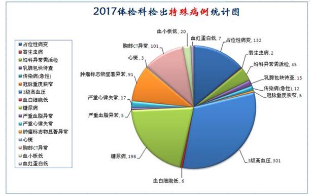 西安高新醫院體檢科2017年全年體檢56435人次,共發現特殊病例1409例, 腫瘤64例(1.1‰),其中癌癥34例,均已及時通知。