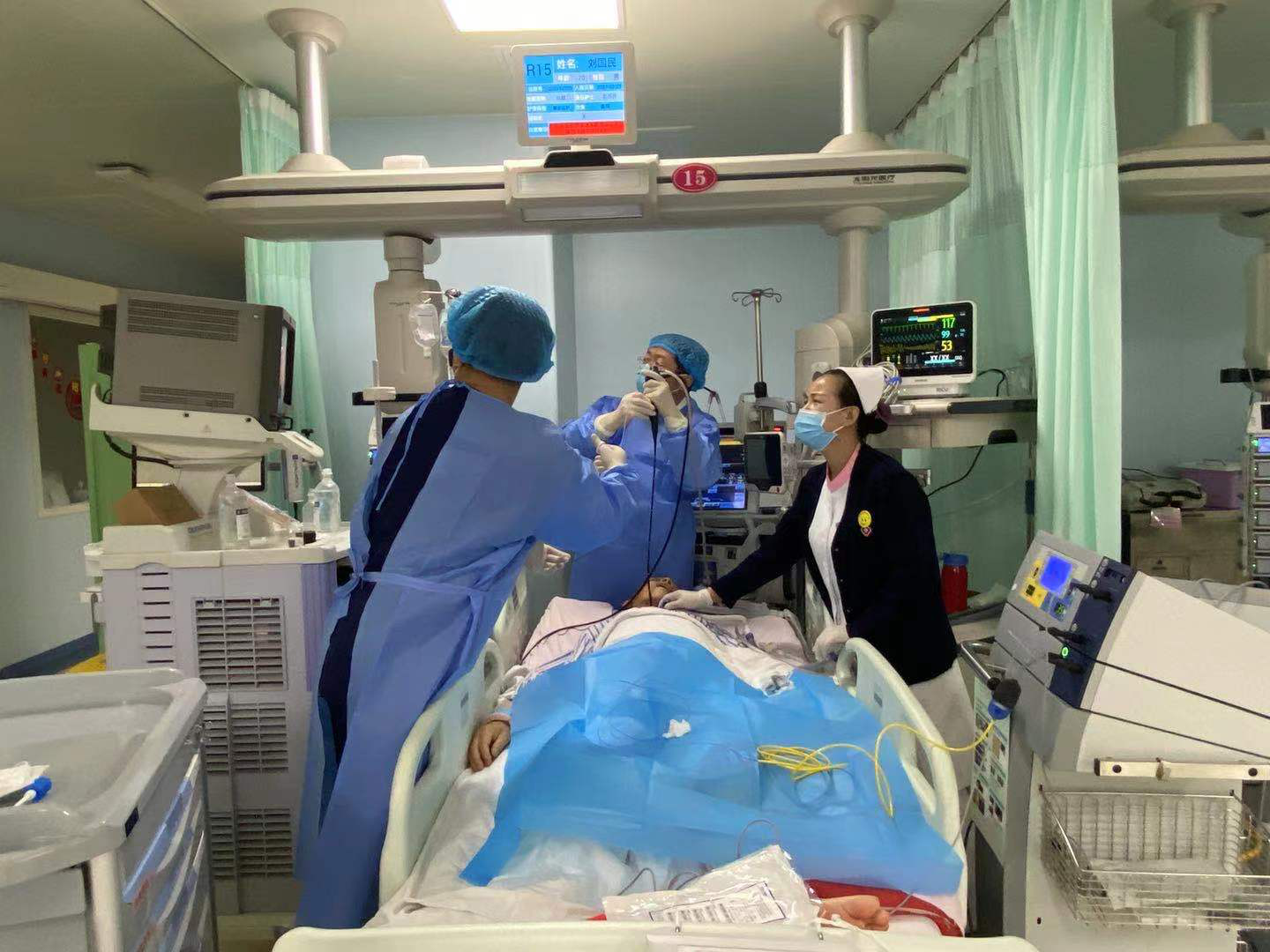 呼吸介入技術(shù)是當(dāng)今呼吸與危重癥醫(yī)學(xué)治療的熱點(diǎn),隨著該技術(shù)的發(fā)展,支氣管鏡下治療已成為呼吸介入技術(shù)中最重要的不可或缺治療手段。西安國際醫(yī)學(xué)高新醫(yī)院呼吸與危重癥醫(yī)學(xué)科近日接診從陜北急診轉(zhuǎn)來的一位72歲老年男性,患喉癌術(shù)后2年,近1月來氣短進(jìn)行性加重,在當(dāng)?shù)啬呈屑夅t(yī)院行支氣管鏡檢查發(fā)現(xiàn)主氣道中下段一腫物堵塞管腔約90%。患者呼吸困難進(jìn)行性加重,心跳增快,氧合差。醫(yī)生束手無策,建議立即轉(zhuǎn)西安治療。患者家屬一路輾轉(zhuǎn)急診轉(zhuǎn)至我院呼吸與危重癥醫(yī)學(xué)科。高和飛副主任醫(yī)師即刻接診患者,發(fā)現(xiàn)患者呼吸極度困難,處于瀕死狀態(tài)。 憑著他職業(yè)的敏銳性,迅速判斷為大氣道阻塞,緊急床邊行支氣管鏡檢查,術(shù)中發(fā)現(xiàn)氣管下段一“菜花樣腫物”阻塞氣管至主氣道明顯狹窄,此刻如不及時處理患者隨時會發(fā)生窒息死亡的危險。呼吸科與危重癥醫(yī)學(xué)科張春芳主任緊急組織全科討論,迅速確定診治方案,果斷決定由高和飛副主任醫(yī)師在全麻下為患者行支氣管鏡APC(氬氣刀)聯(lián)合冷凍介入治療。并充分制定了應(yīng)急預(yù)案。組織多名醫(yī)生,護(hù)士守候。在間斷呼吸機(jī)機(jī)械通氣中,在最短時間內(nèi)為患者實(shí)施了氣道中下段,“APC氬氣刀聯(lián)合冷凍技術(shù)”腫瘤切除術(shù),術(shù)中因腫塊大基地部寬,操作難度極大,患者缺氧嚴(yán)重,心率加快,手術(shù)操作更加重缺氧,術(shù)中血氧飽和降至50?60%,心率增至150?160次/分。患者隨時隨地都有發(fā)生心跳驟停的可能,驚心動魄的場面讓所有在場的醫(yī)生,護(hù)士都懸著一顆心,捏著一把汗。最終手術(shù)歷時2小時15分順利取出腫塊組織約6.0?2.0cm大小。患者呼吸困難立即緩解,病情轉(zhuǎn)危為安。手術(shù)達(dá)到了預(yù)期目的,挽救了患者,受到患者及家屬的贊譽(yù)與滿意。