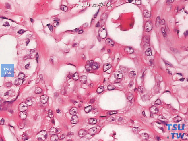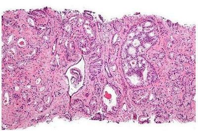 前列腺癌根據(jù)腺體分化、多形性、核異常分級,現(xiàn)常用Gleason分級,將癌細胞分化分為主要和次要兩個級,每個級分1~5分。兩個級的分數(shù)相加,總分2~4分屬分化良好癌、5~7分屬中等分化癌、8~10為分化不良癌。