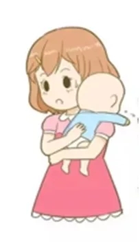 每次喂完奶把寶寶豎著抱起,將頭靠在大人的肩膀上,用手從下到上輕輕拍寶寶的背部(如圖左),如果拍不出嗝,也可以嘗試橫坐式拍嗝(如圖右)。