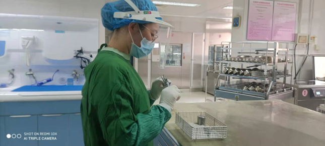 下圖是我們的工作人員正在為我們一天即將開始的工作做準備, 下圖是工作人員正在認真的進行器械分類和性能檢查,我們必須按照相關操作流程認真的去核對每一件器械,