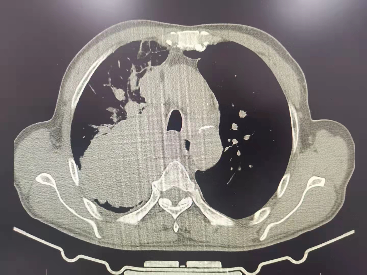 今日再次為一例肺部占位合并氣道內(nèi)腫瘤的患者施行支氣管鏡下的介入手術(shù),術(shù)前呼吸困難、心律失常二聯(lián)律,術(shù)后患者呼吸困難明顯緩解,且心律失常得以糾正,效果立竿見影。但是影像學(xué)的巨大腫塊,還需要結(jié)合病理分型采取恰當(dāng)?shù)木C合治療手段來減緩和控制疾病進(jìn)展。呼吸介入,我們團(tuán)隊一直在前進(jìn)中。