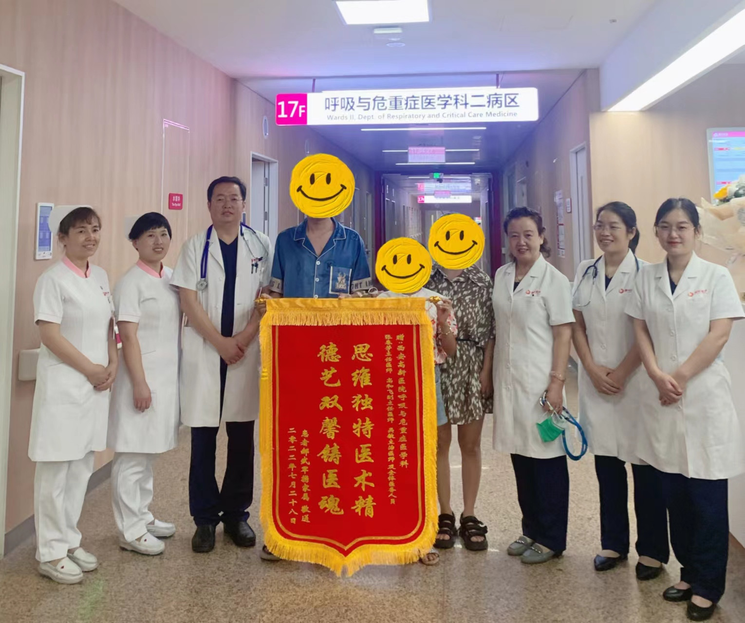 最近呼吸與危重癥醫(yī)學科收住了一例罕見的豬鏈球菌感染患者。該患者35歲男性,個體戶,兩個孩子的父親,屬于家中的頂梁柱。2年余來疫情影響禍不單行,不僅賠完了全家積蓄,入院前2月曾因車禍脾臟破裂行脾臟切除術(shù)。近期因生計烤豬蹄為生,不幸的是因發(fā)熱休克急診入住我們呼吸與危重癥醫(yī)學科監(jiān)護病區(qū),在張春芳主任、高和飛副主任帶領(lǐng)下應用傳統(tǒng)實驗與現(xiàn)代基因技術(shù)第一時間診斷豬鏈球菌感染導致的敗血癥、膿毒性休克、多臟器功能衰竭(呼吸、循環(huán)、心、肝、腎衰竭及DIC),因患者病情危重,醫(yī)療費用支出龐大,患者家屬經(jīng)濟非常困難,見此情況,在高和飛副主任積極倡導及推動下呼吸重癥監(jiān)護病區(qū)醫(yī)護人員積極捐款,同時聯(lián)系水滴籌平臺支持下,提供了重要的經(jīng)濟支撐,在呼吸與危重癥監(jiān)護病區(qū)醫(yī)護人員團結(jié)協(xié)作、不懈的努力下患者住院20余天康復出院。患者家屬非常感激,反復鞠躬致謝說是你們這些天使們挽救了我們的家庭!送呼吸與危重癥醫(yī)學科錦旗,呼吸與危重癥醫(yī)學科也如患者家屬錦旗中的那行字:德藝雙馨鑄醫(yī)魂!呼吸與危重癥醫(yī)學科是一支年輕而有活力的團隊,具有愛心與擔當?shù)膱F隊,我們一直在努力前行……