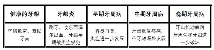 牙周炎主要是由局部刺激因素引起的牙周組織慢性進(jìn)展性破壞性疾病,是導(dǎo)致成年人失牙的主要原因之一。早期表現(xiàn)為牙齦紅腫、牙齦出血,若未能及時發(fā)現(xiàn)并處理,炎癥通常會進(jìn)一步向深層發(fā)展,待到出現(xiàn)明顯的牙齒松動、疼痛癥狀時,炎癥發(fā)展己較為嚴(yán)重,有時甚至牙齒已經(jīng)不能保留。因而亟需加強健康宣教,幫助牙周炎患者意識到疾病的發(fā)生,從而盡早就診和治療。