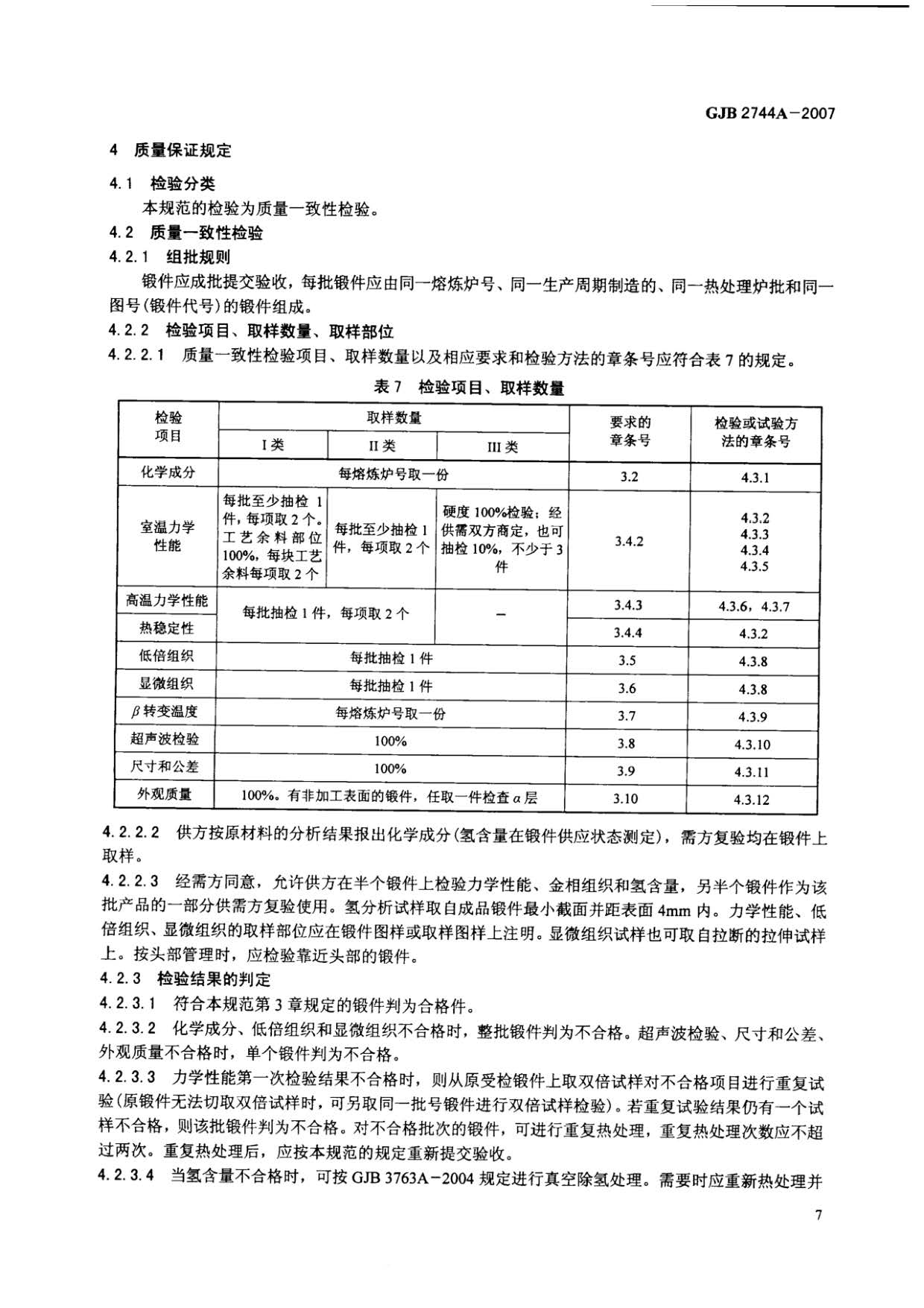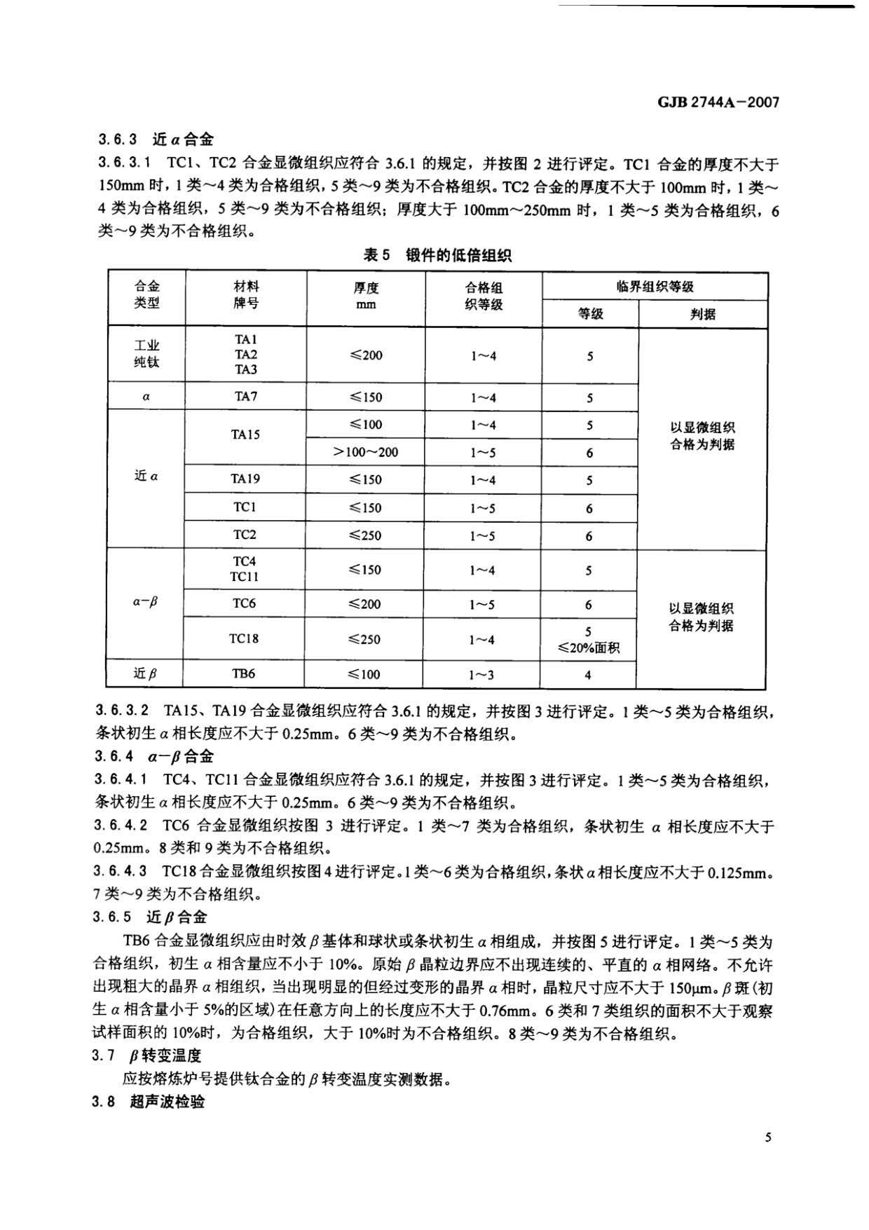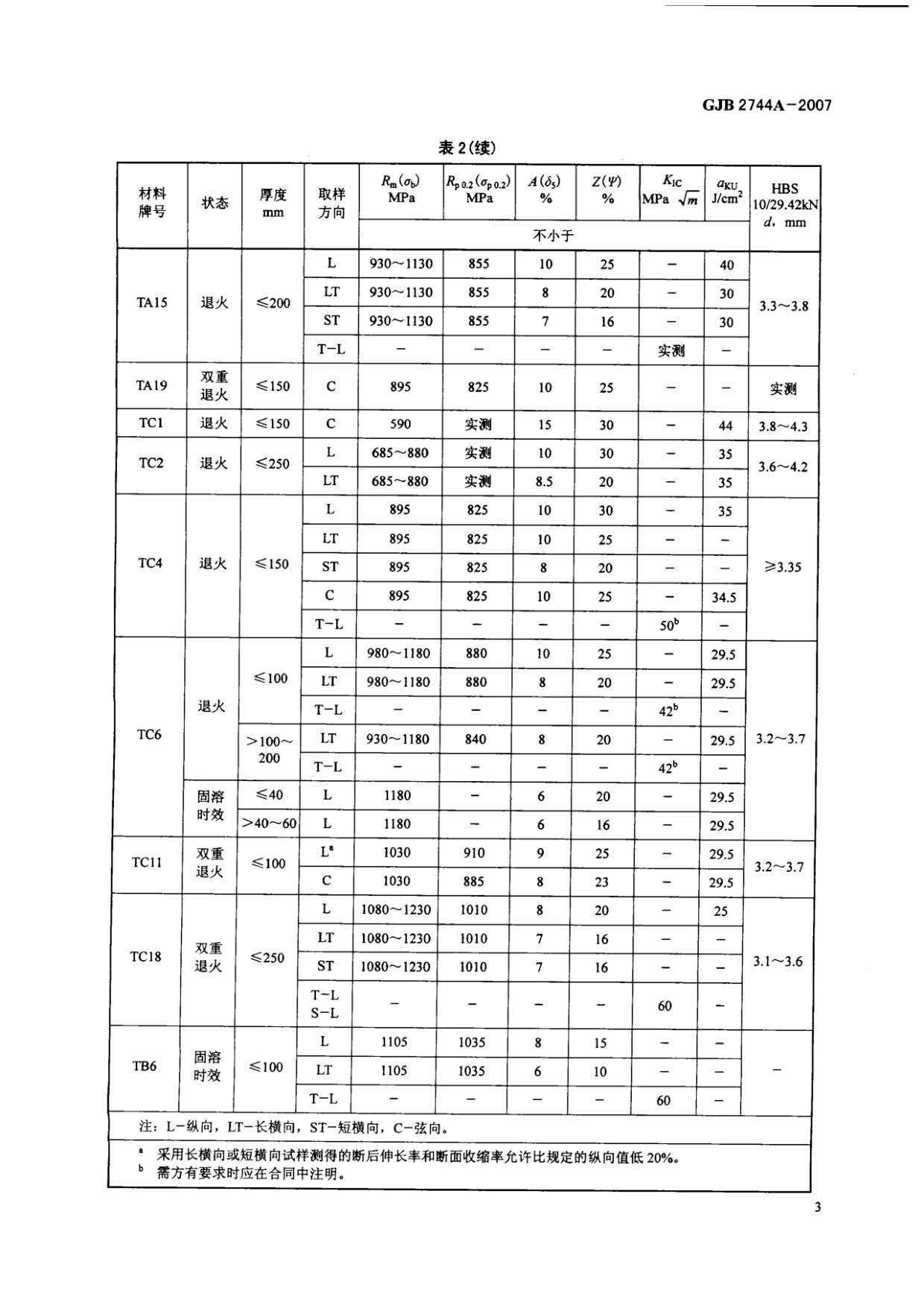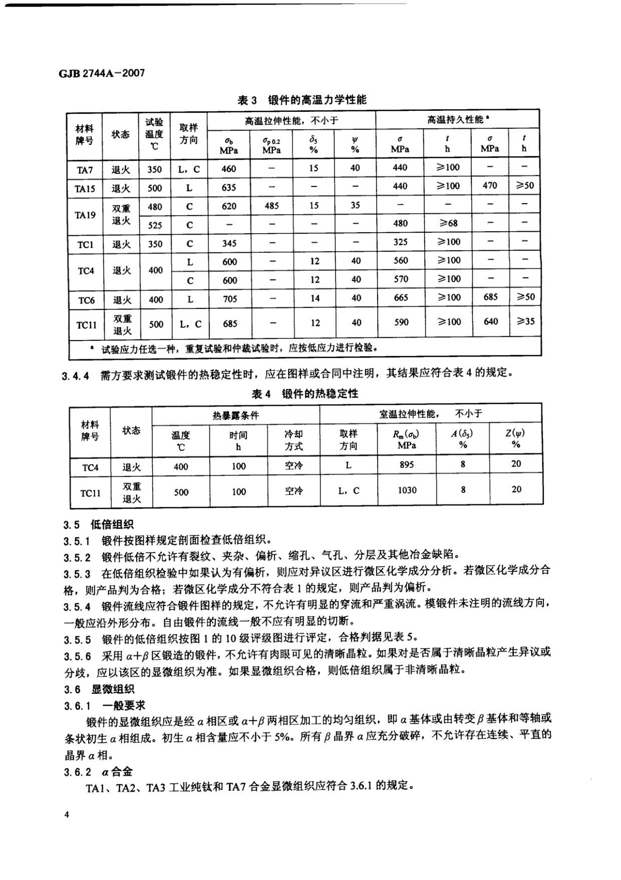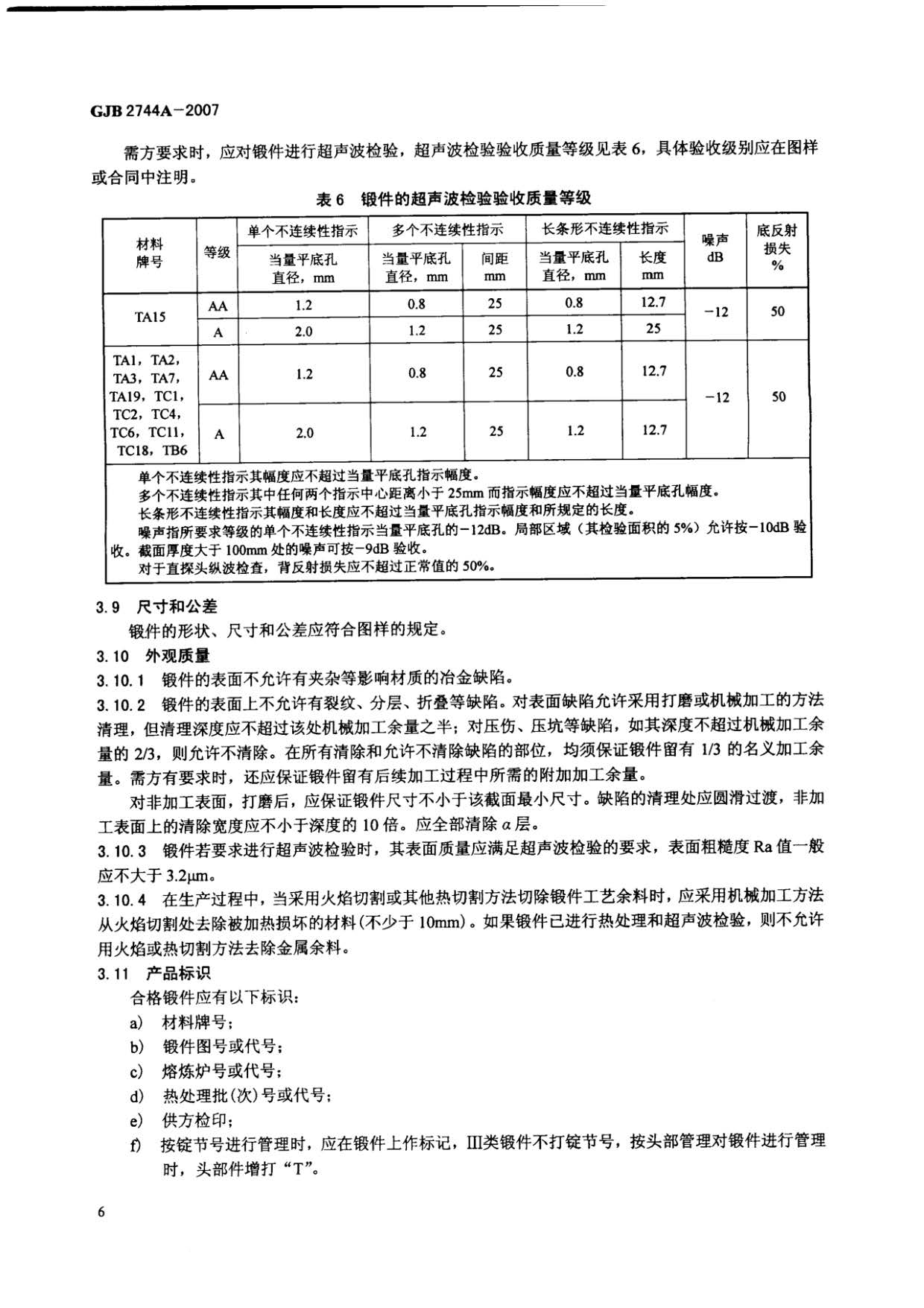航空用鈦及鈦合金鍛件規范 GJB 2744A-2007,規定了TA1、TA2、TA3、TA7、TA15、TA19、TC1、TC2、TC4、TC6、TC11、TC18、TB6鈦及鈦合金自由鍛件和模鍛件(以下簡稱鍛件)的要求,質量保證規定和交貨準備等。